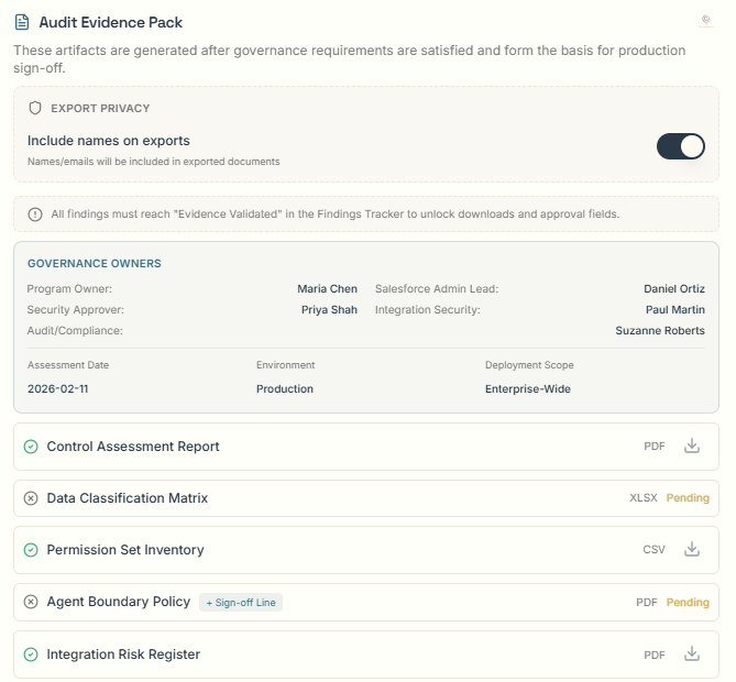 A structured 30-day, 4-week, governance program designed to produce documented, defensible approval for Agentforce production deployment.
